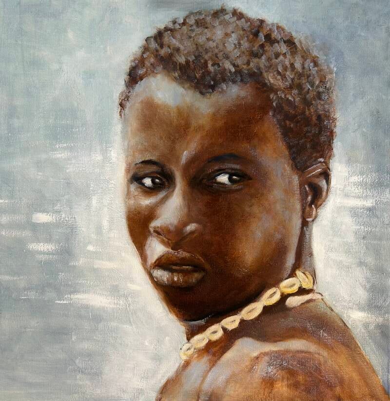 "Perdu dans ses pensees" TOGO Olieverf op doek 24-30cm