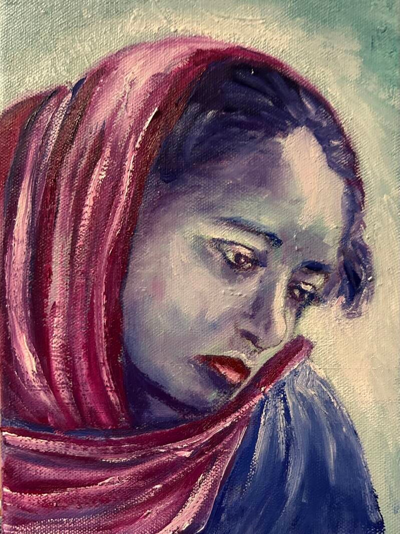 Woman from Gujarat II Indie olieverf op doek 18-24 cm